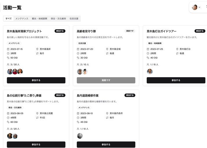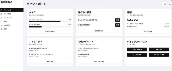 DAO的に参加者の意見を集めながら、地域のリーダーの活動を通じて地域の課題解決や新しい取り組みに参加することができるアプリケーション。